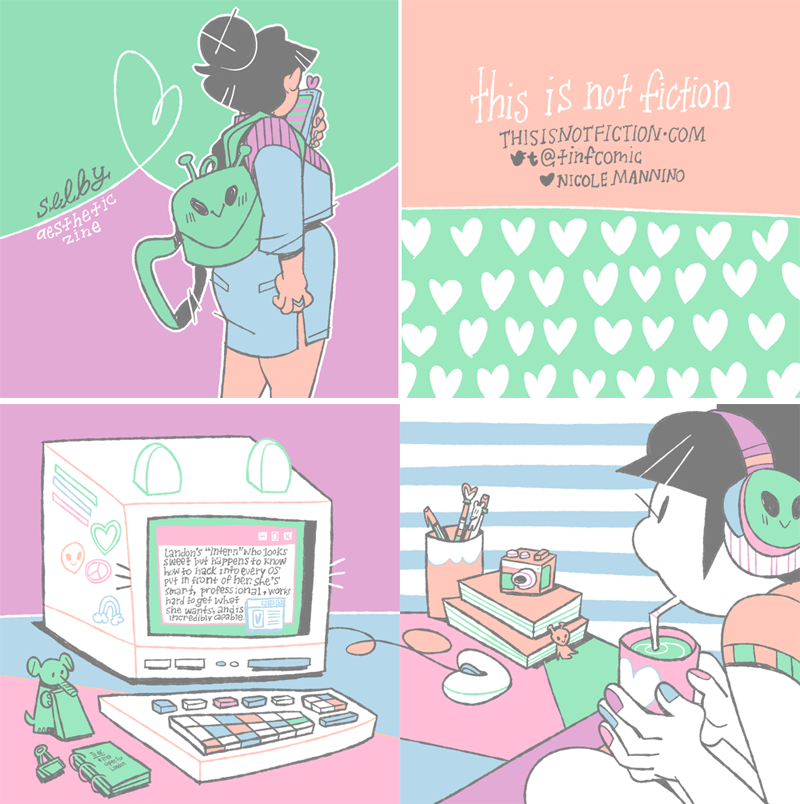 A 26-page zine featuring Selby from the webcomic THIS IS NOT FICTION. It includes both fashion and aesthetic illustrations.